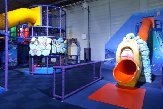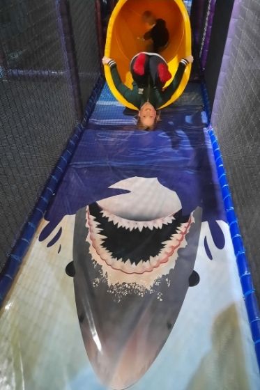 Het indoor attractiepark is opgedeeld in drie gedeeltes. Het Play-In gedeelte is een kinder speelparadijs met een onderwater thema. Dit is goed voor uren speelplezier. Je kunt er glijden door de haaienbek, spelen tussen de vissen, een onderwatervulkaan beklimmen en nog veel meer. De kinderen kunnen zich hier makkelijk de hele dag vermaken. Aan de kleinsten is ook gedacht, met een overzichtelijke peuterhoek. Marley vond dit heel leuk. Er was ook zoveel te ontdekken. Er was een kleine ballenbak, een klein glijbaantje en nog veel meer. De ouders of verzorgers kunnen relaxen in één van de gezellige zithoekjes. Bij de beachbar kan wat te drinken of eten worden gehaald.